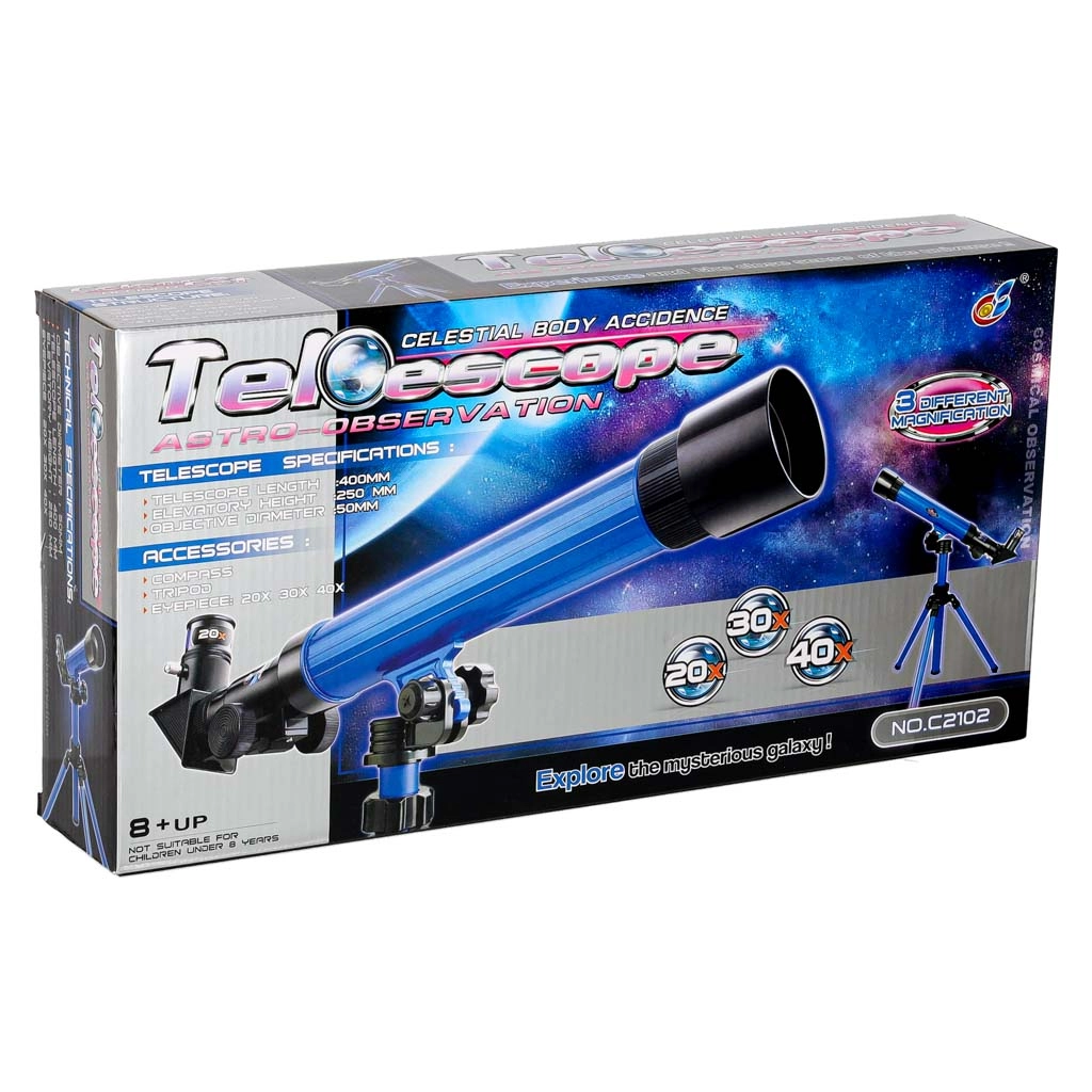 Šis bērnu teleskops ir lieliska izvēle pirmajai iepazīšanai ar astronomiju. Tas piedāvā trīs palielinājuma līmeņus (20x/30x/40x), lai viegli pietuvinātu Mēnesi, spilgtas planētas vai zemes objektus. Stabilais statīvs ar iespēju griezties par 360° un regulējamu augstumu nodrošina ērtu novērošanu.