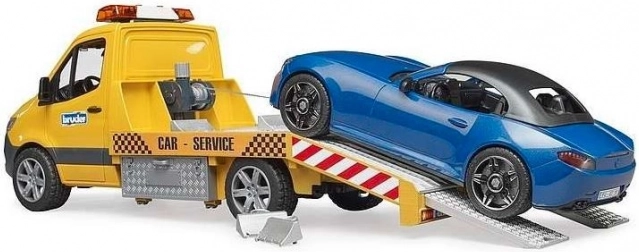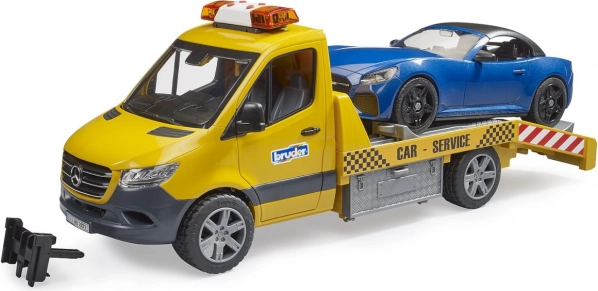 BRUDER evakuators pēc MB Sprinter parauga izceļas ar detalizētu izpildījumu un plašu funkcionalitāti. Bērnus iepriecinās bākuguns ar gaismu un skaņu, reālistiska rampa ar izbīdāmām sliedēm un riteņu ķīļiem, kā arī atveramas durvis un sānu skapīši. Komplektā ir sporto kabriolets ar noņemamu jumtu un nomaināmiem riteņiem.