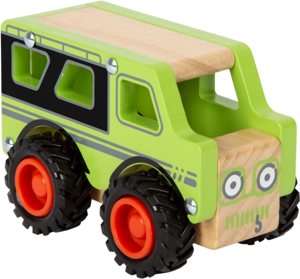 Robusta un izturīga koka mašīnīte, kas izgatavota no masīvkoka, iegūta ilgtspējīgā veidā. Mašīnītei ir ietilpīga kabīne un klusa gaitа, pateicoties gumijas riteņiem. Ideāli piemērota mazajiem piedzīvojumu meklētājiem!