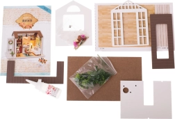 Komplektā ir viss nepieciešamais viesistabas uzbūvei un aprīkojumam, tostarp līme un detalizētas attēlu instrukcijas. LED apgaismojums, kas iekļauts iepakojumā, darbojas ar baterijām (2× AAA 1,5 V un 3× 1,5 V LR54 – baterijas nav iekļautas), un lieliski papildina kopējo atmosfēru.