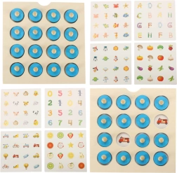 Koka izglītojoša rotaļlieta ar noņemamiem tapām un attēliem ar skaitļiem. Palīdz bērniem apgūt skaitļus un attīstīt sīko motoriku, savienojot tapas ar atbilstošajiem attēliem.
