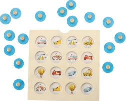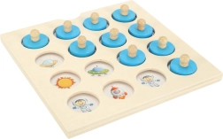 Koka spēles dēlis ar plastmasas figūrām, kas rotātas ar astronautu, raķešu un planētu attēliem. Kalpo kā izglītojoša rotaļlieta atmiņas un kognitīvo prasmju attīstīšanai.