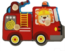 Koka puzle ar ugunsdzēsēju automašīnas motīvu ir ideāla mazajiem bērniem, kuri vēlas apgūt koordināciju un loģisko domāšanu. Šis krāsainais un rotaļīgais produkts veicina smalkās motorikas attīstību.