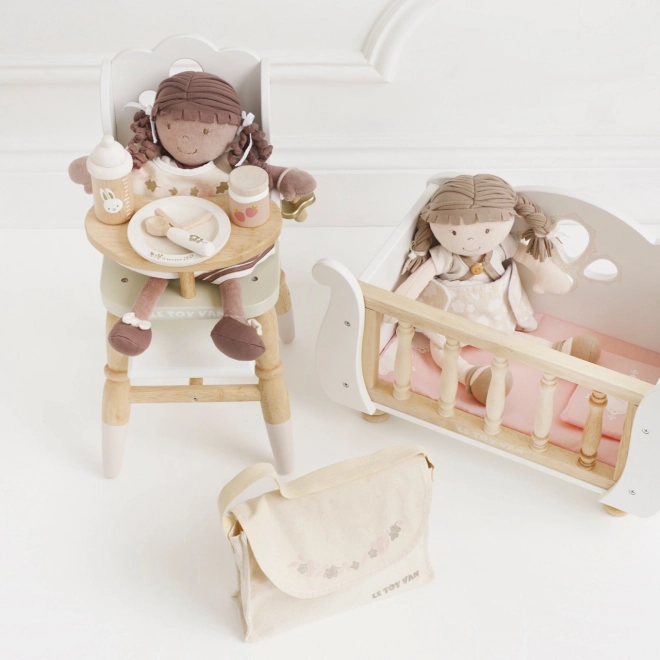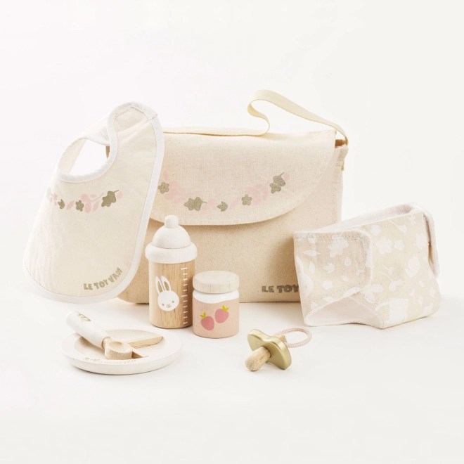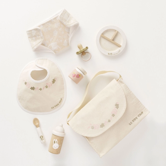 Kopšana par lellēm un mīkstajām rotaļlietām nekad nav bijusi tik jautra un iedvesmojoša. Le Toy Van kopšanas komplekts piedāvā pilnu aprīkojumu mazajiem gādīgajiem. Komplektā ir tekstila pārtinamā soma ar dekoratīvu rakstu, knupītis, priekšautiņš, autiņš, šķīvis, karote, biezenītis un pudelīte. Katrs elements ir izgatavots, domājot par ilgtspēju un kvalitāti, lai izturētu daudzas rotaļu stundas.