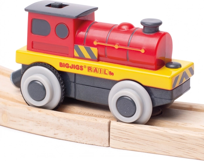 Iedarbini savu koka vilciena trasi ar elektrisko lokomotīvi no Bigjigs Rail. Pateicoties bateriju piedziņai tā ātri traucas pa sliedēm, viegli velk vagonus ar magnētiskajām sakabēm, bet gumijas uzmavas uz riteņiem nodrošina vienmērīgu saķeri bez slīdēšanas. Izturīgs un drošs izpildījums pievilcīgā sarkanā krāsā un saderība ar lielāko daļu vilciena trašu garantē stundām ilgu radošu spēli.