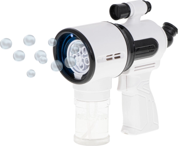 Šī baltā burbuļu pistole ir ideāla bērniem no 3 gadu vecuma un ģimenes āra aktivitātēm. Integrētais ventilators un 5 gredzenu sistēma nodrošina vienmērīgu pūšanu un desmitiem līdz simtiem burbulīšu plūsmu ar vienu sprūda spiedienu. Lielākai izklaidei ir LED apgaismojums un skaņas, kuras var ieslēgt vai izslēgt ar vienu pogu.