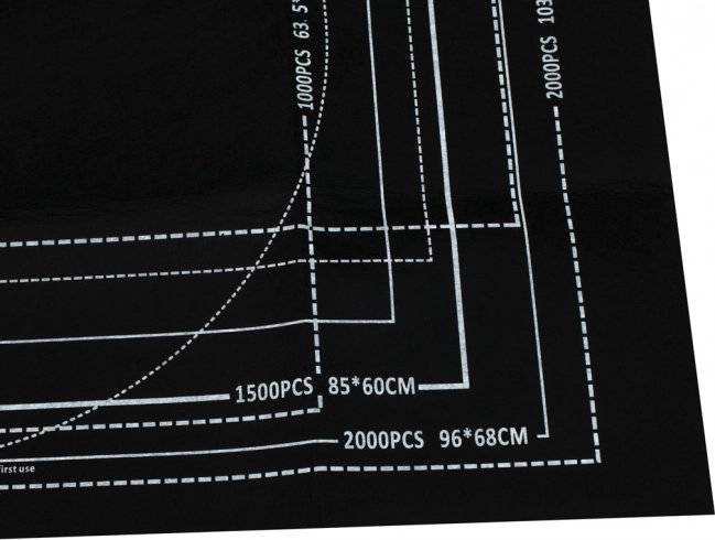 Baltais marķējums uz paklājiņa precīzi norāda izmērus 500–2000 gabaliņiem, lai jūs viegli varētu saplānot kompozīciju.