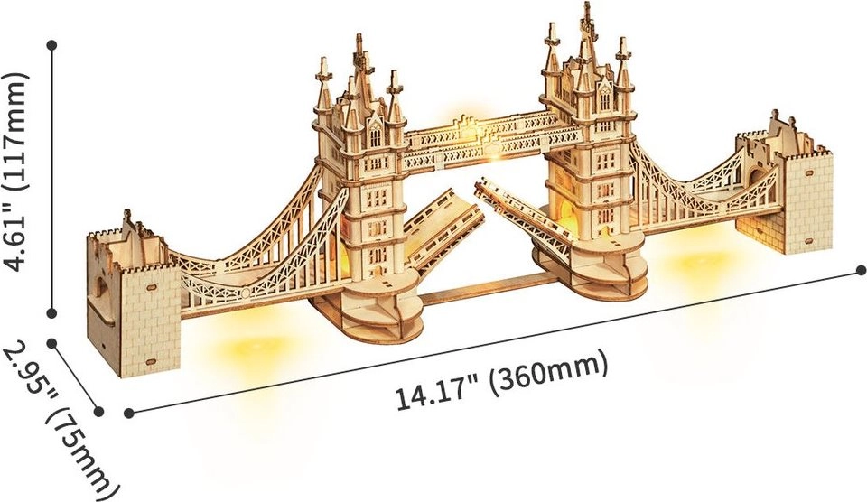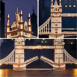 Atklājiet Londonas atmosfēru ar reālistisku Tower Bridge modeli no kvalitatīvas saplākšņa. Detalizētās daļas precīzi savienojas, nodrošinot plūstošu un aizraujošu būvēšanu. Integrētais LED apgaismojums piešķir pabeigtajai būvei mājīgu vakara noskaņu un izceļ pārdomātās arhitektoniskās līnijas.