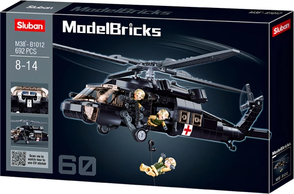Uzbūvē ikonisko glābšanas helikopteri UH–60 Black Hawk no Sluban ModelBricks sērijas. 692 detaļas, 4 figūriņas un funkcionālas detaļas, piemēram, rotējoši rotori un aprīkojums glābšanas misijām, nodrošina stundām ilgu radošu izklaidi. Kvalitatīvs ABS plastmasas materiāls, vidēja grūtība un saderība ar LEGO, Cobi un Mega Bloks iepriecinās gan mazos, gan lielos būvētājus.