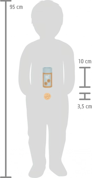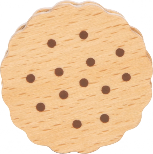 Šie pieci izturīgie koka cepumi ir lielisks papildinājums bērnu rotaļām. Tie ne vien veicina radošumu un iztēles spēles, bet arī palīdz attīstīt motoriskās prasmes, pateicoties savai dabiskajai un reālistiskajai tekstūrai. Katram cepumam ir šokolādes pildījums, un detaļas piesaista bērnu uzmanību.