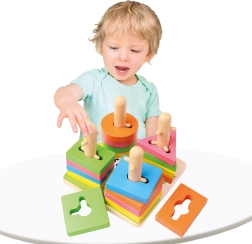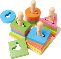Rotaļlieta ir ideāli piemērota pirmajam solim loģiskajā domāšanā – bērniem jāizlīdzina izgriezumi un pareizi uzvērt formas. Izturīgais koka izpildījums un gludās malas sniedz drošību un ilgmūžību. Lieliski piemērota gan patstāvīgai spēlei, gan kopīgai mācīšanai ar vecākiem.