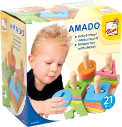 Šī kvalitatīvā koka vēršanas spēle piedāvā 21 krāsainu gabaliņu un stabilu pamatni ar tapām. Pateicoties gudri veidotām atverēm un stabiņiem, bērni vingrina formu pārošanu, krāsu atpazīšanu un telpisko uztveri. Kompaktie izmēri 15 × 11,5 × 15 cm nodrošina ērtu glabāšanu un spēlēšanos uz galda vai paklāja.