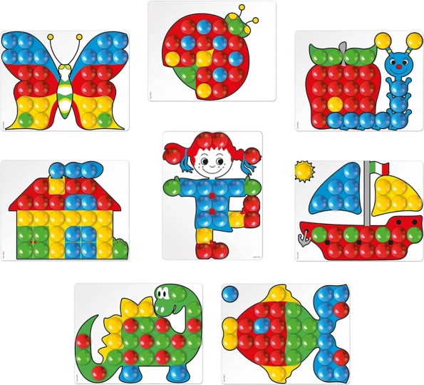 Šī izglītojošā rotaļlieta ir izgatavota no kvalitatīvas, nekaitīgas un izturīgas plastmasas. Mozaīkas likšana nomierina un vienlaikus attīsta svarīgas prasmes: sīko motoriku, vizuālo uztveri, radošumu un loģisko domāšanu.