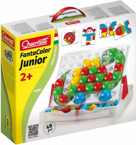 Atklājiet radošo mozaīku QUERCETTI FANTACOLOR JUNIOR, kas attīsta bērnu iztēli un sīko motoriku. Pateicoties lielajām pogām bērniem ir viegli tās satvert, praktiskais koferītis tur visu kopā, bet 8 divpusējie paraugi iedvesmo veidot darbus. Rotaļlieta veicina krāsu atpazīšanu, acu–roku koordināciju, koncentrēšanos un pacietību.