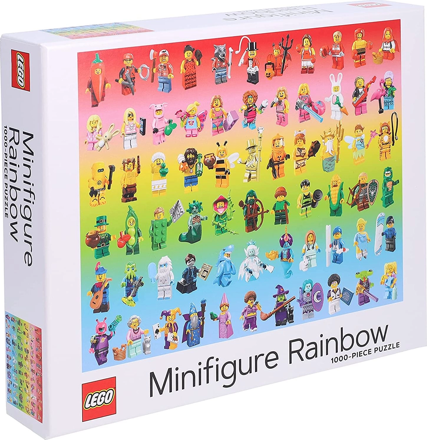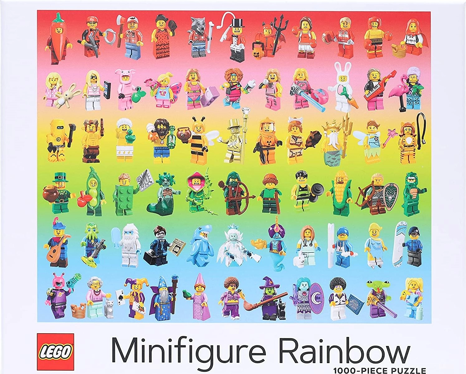 Šī dizaina puzle iepriecinās ikvienu LEGO cienītāju un krāsu izaicinājumu mīļotāju. Desmitiem unikālu minifigūriņu ir sakārtotas pēc krāsām, veidojot iespaidīgu varavīksnes pāreju, ko ir prieks gan salikt, gan izstādīt. Kvalitatīva druka ar nekaitīgām krāsām un matēta virsma nodrošina lielisku detaļu salasāmību bez atspīdumiem.