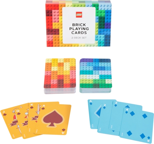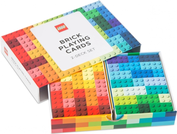 Stilīgs LEGO licencēts spēļu kāršu komplekts piedāvā 2 atsevišķas kavas (kopā 108 kārtis), piemērotas kanastai, pokeram un citām kāršu spēlēm. Izzīmējas ar spilgām krāsām, LEGO klucīšu un minifigūriņu motīviem un kvalitatīvu izpildījumu no pārstrādātiem un ilgtspējīgiem materiāliem ar apdruku, izmantojot nekaitīgas krāsas.