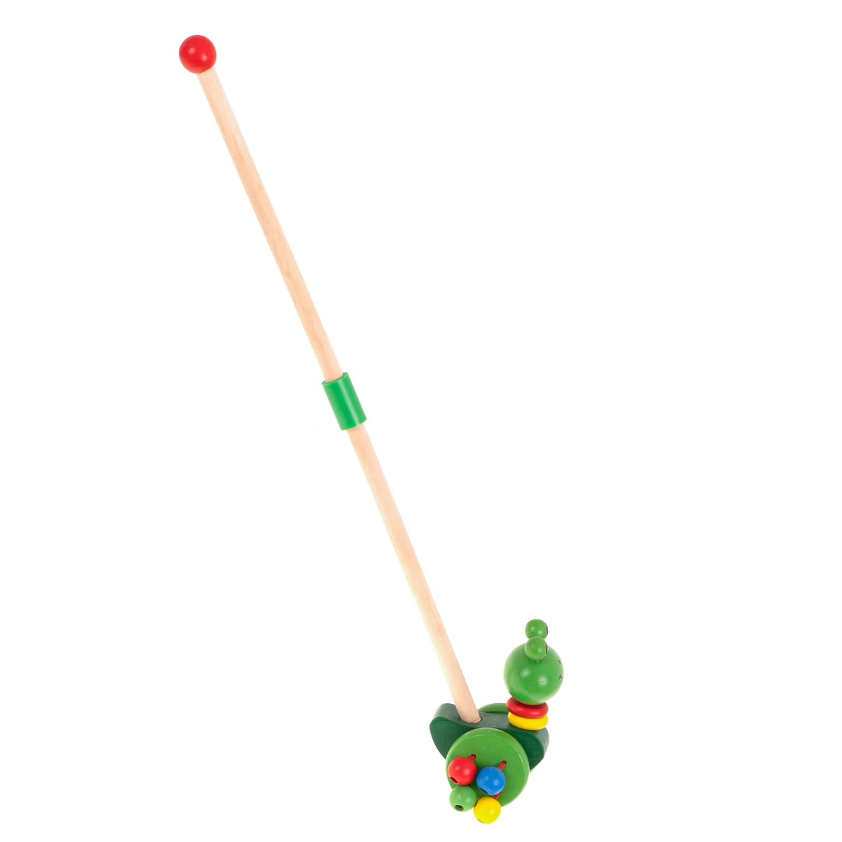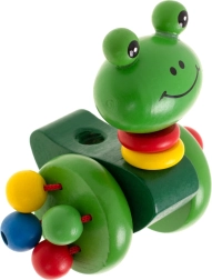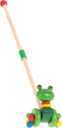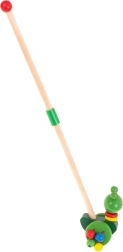 Šarmanta koka vardīte uz riteņiem, ko var vadīt ar noņemamu kātu, ir ideāla rotaļlieta bērniem, kuri tikko mācās staigāt. Tā ne tikai motivē doties pastaigās, bet arī attīsta koordināciju un līdzsvaru.