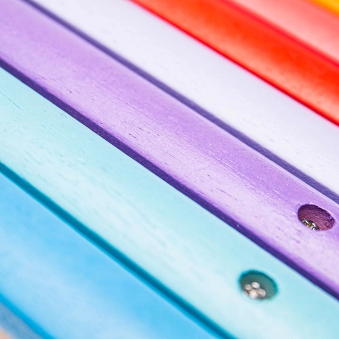 Drošās skrūves nodrošina stingru taustiņu stiprinājumu, kas pasargā bērnus spēlēšanas laikā. Šis ksilofons ir ideāli piemērots koordinācijas un krāsu uztveres attīstīšanai.