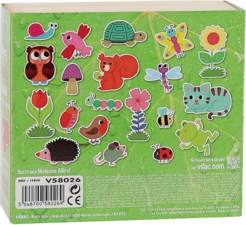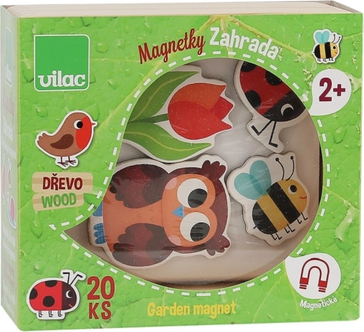 Atklājiet radošās iespējas ar Vilac koka magnētiņiem ar dārza motīvu. Šie izturīgie un videi draudzīgi ražotie gabaliņi piedāvā neierobežotas iespējas spēlēm un dekorēšanai. Izbaudiet skaistas, košas ilustrācijas, kas var rotāt ledusskapi vai bērnu istabu.