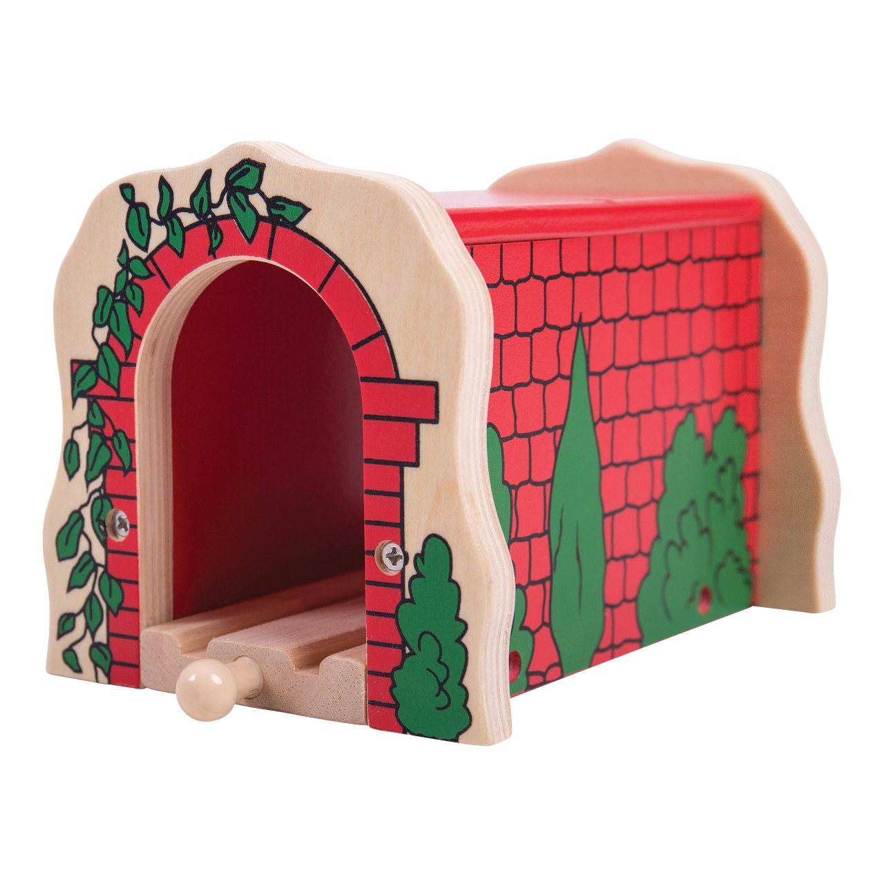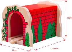 Pievienojiet savai vilcieniņu trasei jaunu dimensiju ar koka ķieģeļu tuneli. Tas ir izgatavots no augstas kvalitātes koksnes, ar izturīgu konstrukciju un pievilcīgu dizainu, kas atgādina ar zaļumiem klātu ķieģeļu būvi.