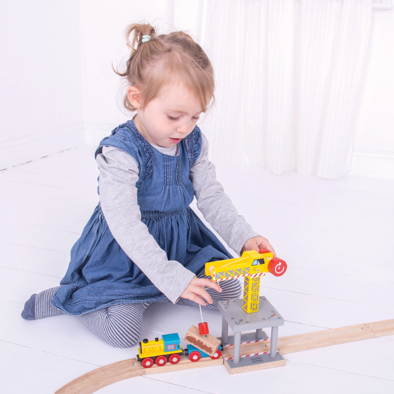 Izmēģiniet iespaidīgo lielo koka celtni Bigjigs Rail, kas ir neaizstājams jebkurai jūsu vilcienu trases iekraušanai un pārkraušanai. Šis robustais celtnis ne tikai atbilst aktuālajiem Eiropas drošības standartiem, bet arī attīsta bērnu iztēli, veiklību un koordināciju.