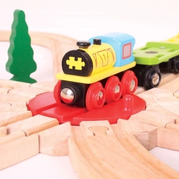 Paplašiniet savu koka vilcieniņu trasi ar praktisku rotējošo galdu, kas sniedz jaunas spēļu un būvēšanas iespējas. Pateicoties astoņām izejām, lokomotīves un vagoni var viegli pagriezties un pievienoties dažādos virzienos, kas veicina bērnu iztēli, veiklību un koordināciju.