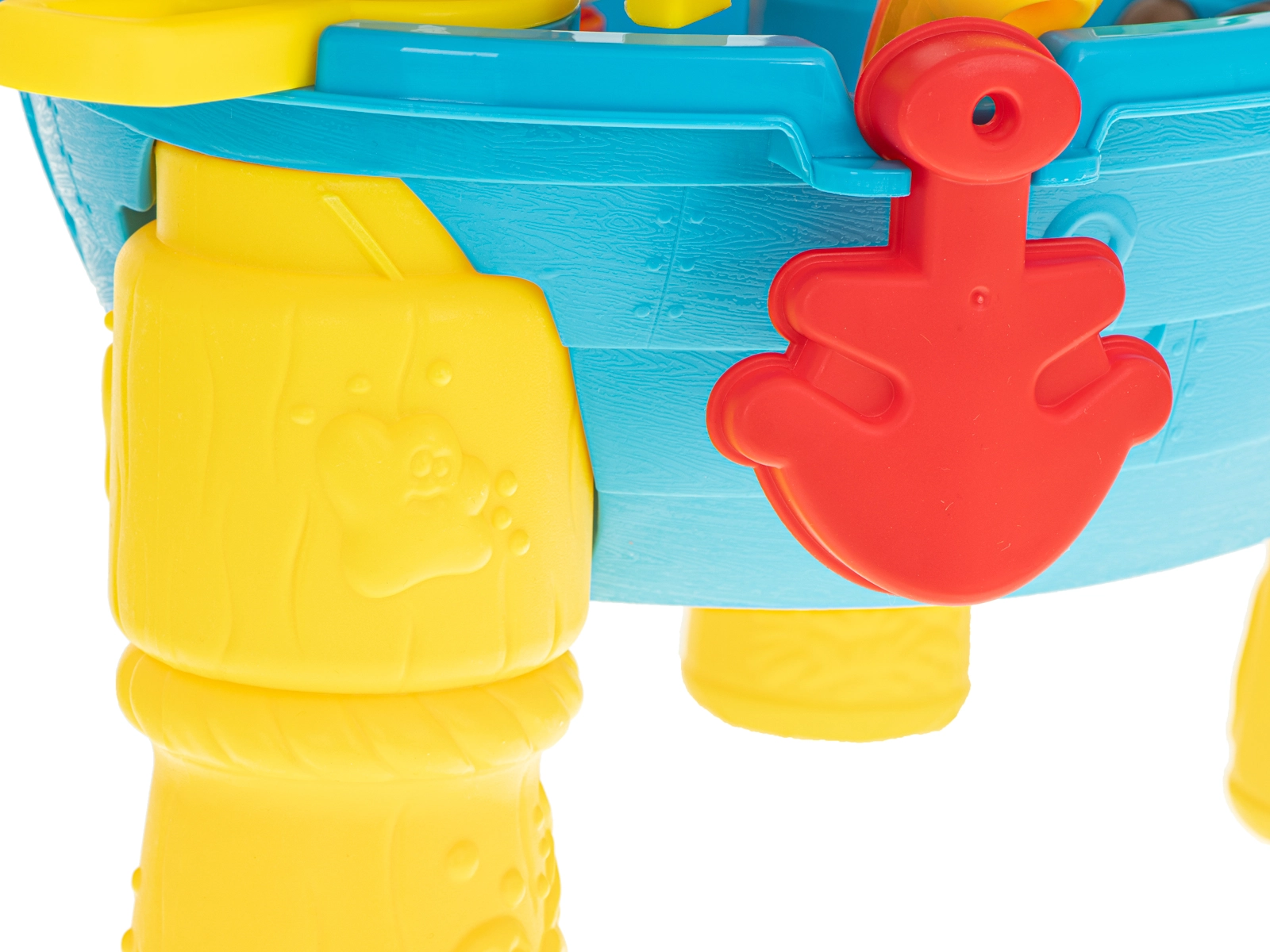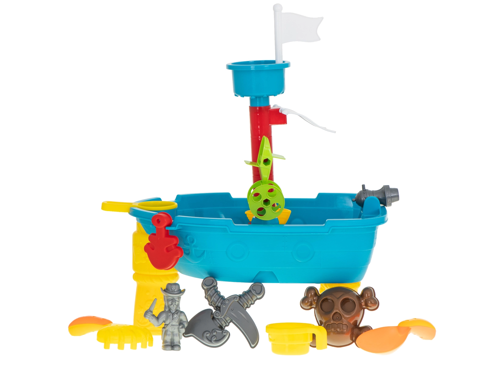 Ar pirātu kuģa spēļu galdu, kas apvieno ūdens un smilšu rotaļas, bērni dodas bezgalīgos piedzīvojumos. Ar šo daudzfunkcionālo galdiņu viņiem atveras pasaule, kas pilna ar ūdens spēlēm un smilšu būvēm.
