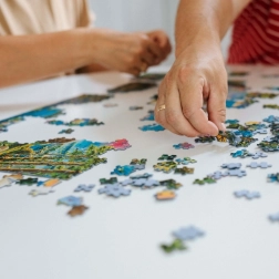 Puzle izgatavota no kartona ar kalandrētu papīru un ekoloģiskām pārtikas krāsām.