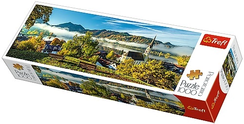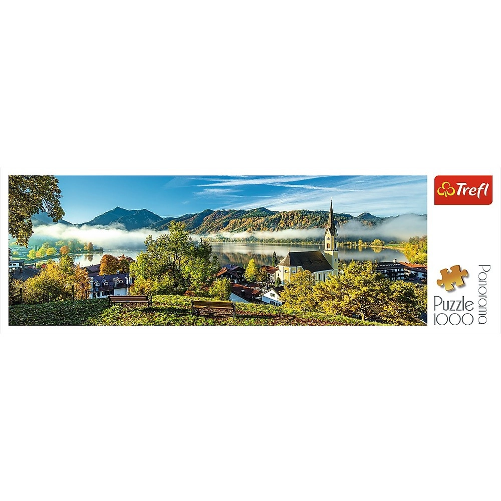Virs Schliersee ezera ir panorāmas puzle ar 1000 gabaliņiem, kas attēlo mierīgu skatu uz Schliersee ezeru. Pabeigta attēla izmēri ir 97 x 34 cm.