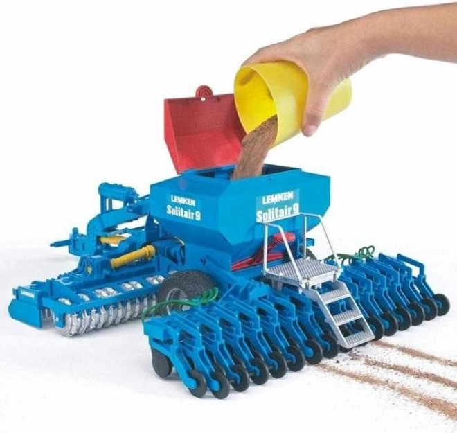 Reālistisks sējmašīnas LEMKEN Solitair 9 modelis 1:16 mērogā no zīmola Bruder piedāvā daudz funkcionālu detaļu autentiskai spēlei. Tam ir uzpildāms sēklu tvertnes nodalījums, nolokāms rāmis un kāpnes, kustīgi diski un 180° pagriežams sakabes āķis. Savietojams ar Bruder traktoriem sērijās 20xx, 21xx un 30xx un izgatavots no kvalitatīvas plastmasas Vācijā.