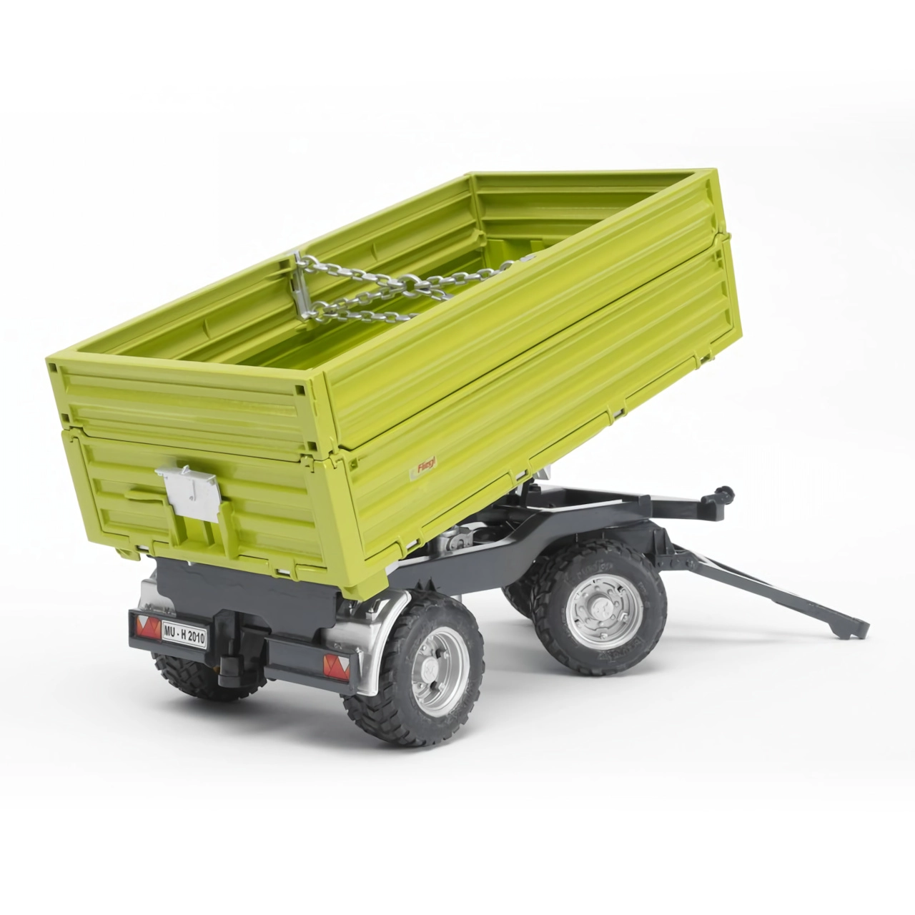 Darba piekabe mazajiem fermeriem: trīsvirzienu paceļamā piekabe FLIEGL no BRUDER mērogā 1:16 piedāvā maināmu paceļamo virzienu uz trim pusēm, atveramas sānu bortus, mīkstas profilētas riepas un iespēju pievienot papildu piekabi. Ražots Vācijā no kvalitatīviem materiāliem.