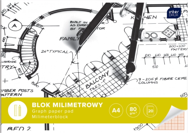 Praktisks A4 formāta milimetru papīra bloks no INTERDRUK, ideāli piemērots tehniskai zīmēšanai, diagrammām un grafikiem. Smalks milimetru tīklojums nodrošina precīzu darbu, papīra 80 g/m² biezums sniedz izturību, bet 20 lapas ar stipru līmēto iesējumu un biezas kartona pamatnes atbalstu ļauj ērti strādāt arī bez galda. Vāks no krītpapīra ir dažādos dizainos, kas tiek piegādāti nejauši.
