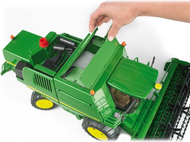 Šis detalizēti izstrādātais BRUDER kombains mērogā 1:16 uzticami atdarina īsto John Deere T670i. Pateicoties funkcionālām detaļām – no rotējoša pļaušanas hedera un stūrējamas aizmugures līdz atveramiem augšējiem un sānu pārsegiem – bērni sapratīs īstas ražas novākšanas principus un baudīs stundām ilgu radošu spēli.