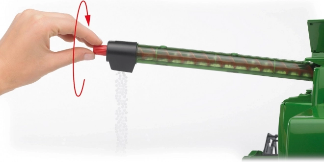Modelis ir izgatavots no kvalitatīvas un izturīgas plastmasas, tādēļ tas ir piemērots gan telpām, gan dārzam vai smilšukastei. Atveramās durvis, nolokāmi spoguļi, grozāmas kāpnes uz kabīni un roka ar funkcionālu gliemežtransportieri “graudu” izbēršanai sniedz maksimāli reālistisku pieredzi.