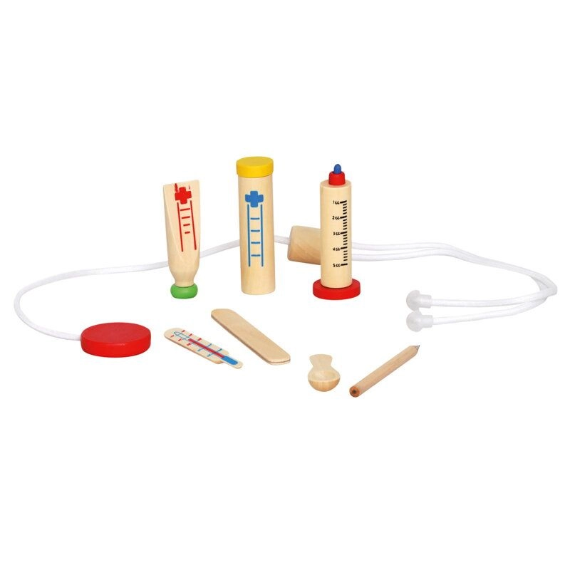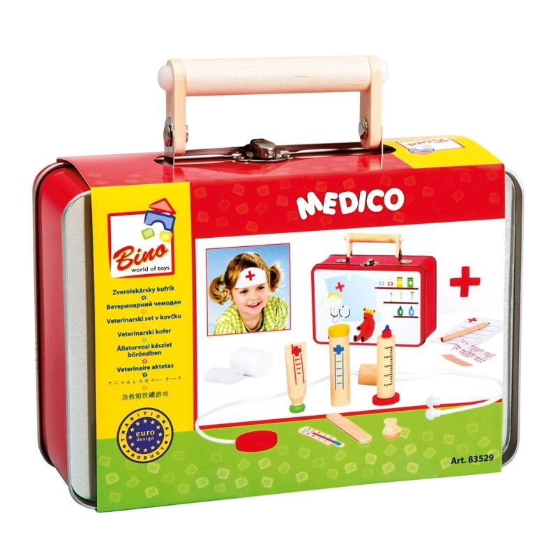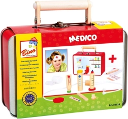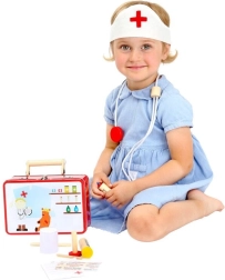 Bērniem patiks koka ārsta koferis, kas veicina viņu radošumu un sabiedriskās prasmes. Šis komplekts piedāvā lielisku iespēju spēlēties “dakteros”, kas palīdz attīstīt bērna valodas un sociālās iemaņas.