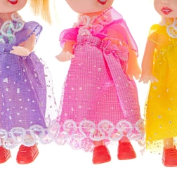 Piedāvājam trīs skaistu leļļu komplektu, kas ir ideāli piemērots rotaļām leļļu namiņā! Tās ir 10 cm augstas un lieliski iederas visās namiņa istabās. Pateicoties to košajiem tērpiem — rozā, dzelteniem un violetiem ar sarkanām kurpēm — jebkura telpa izskatās kā radīta tieši viņām. Šīs lelles sniedz lielisku iespēju attīstīt bērnu radošumu, veicina radošo domāšanu un palīdz attīstīt sīko motoriku.