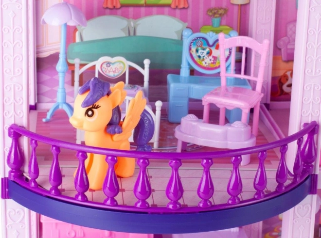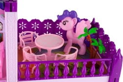 Krāsaina divstāvu leļļu un poniju mājiņa piedāvā daudz izklaides un piederumu radošai spēlei. Komplektā ir poniju un sunīša figūriņas, mēbeles virtuvei, guļamistabai un vannasistabai, kā arī balkoni un terase āra ainām. Ideāli bērniem no 3 gadu vecuma, kuri mīl fantāzijas stāstus, bagātīgus aksesuārus un interaktīvu spēli.