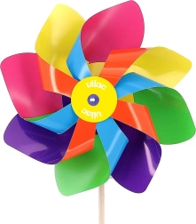 Vēja ritenis ir lielisks aksesuārs, kas atdzīvina ziedu kompozīcijas un āra telpas, kā arī vienkārša rotaļlieta, kas dabiski mudina bērnus vērot vēju un krāsainu kustību.