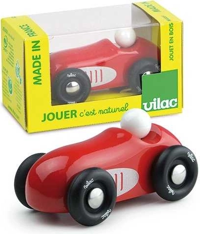 Stilīga miniatūra sacīkšu mašīnīte no lakota koka iepriecinās gan mazus, gan lielus auto entuziastus. Tai ir masīvi gumijas riteņi vienmērīgai kustībai, izturīgs koka korpuss un mūžīgs sarkans dizains. Lieliski piemērota spēlei un kā dekorācija. Ražots Francijā.