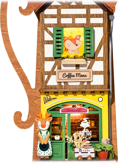 Iepakojumā iekļauts viss nepieciešamais montāžai, tostarp koka detaļas, dekorācijas, krāsas, līme, ota un pincete. Apgaismojumu ir viegli iestatīt un ātri ieslēgt ar slēdzi. Mikro pirkstiņu baterijas (2xAAA) nav iekļautas komplektā, pievienota detalizēta instrukcija.