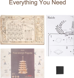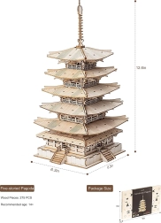 Šis ROBOTIME ROLIFE Do It Yourself sērijas modelis ļauj jums izveidot savu 3D koka pagodu. Ar lāzergravētiem un izgrieztiem gabaliņiem no saplākšņa ir patīkami strādāt, turklāt tie ir droši un netoksiski. Modelis attīsta tehnisko iemaņu un iztēles kombināciju, kā arī jūsu uzmanību detaļām un smalko motoriku.