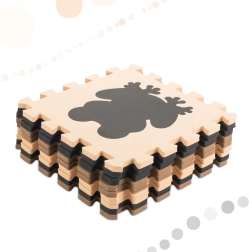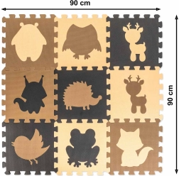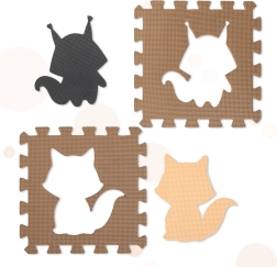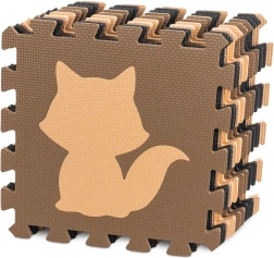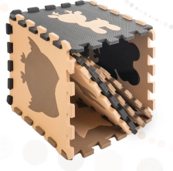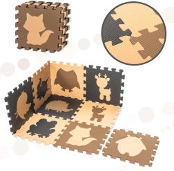 Mīksts un drošs bērnu paklājiņš no izturīgām EVA putām neitrālos bēšos un brūnos toņos. Komplektā 9 gabali ar izņemamām dzīvnieku figūrām veido laukumu 85 × 85 cm un ļauj veidot arī 3D formas. Izolē no aukstuma, slāpē triecienus, ir ūdensizturīgs un viegli kopjams. Ideāli piemērots pirmajiem soļiem, rotaļām un formu apgūšanai.