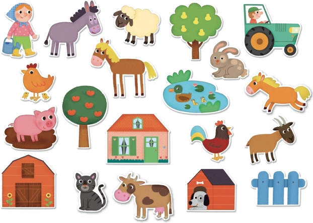 Šis iecienītais komplekts bērniem piedāvā aizraujošu iepazīšanos ar dzīvi lauku sētā. Koka magnētiņi ir izturīgi, patīkami turēt rokā un skaisti koši, pateicoties kvalitatīvai apdrukai. Tie lieliski der brīvai spēlei, stāstu veidošanai un pirmajai dzīvnieciņu iepazīšanai.