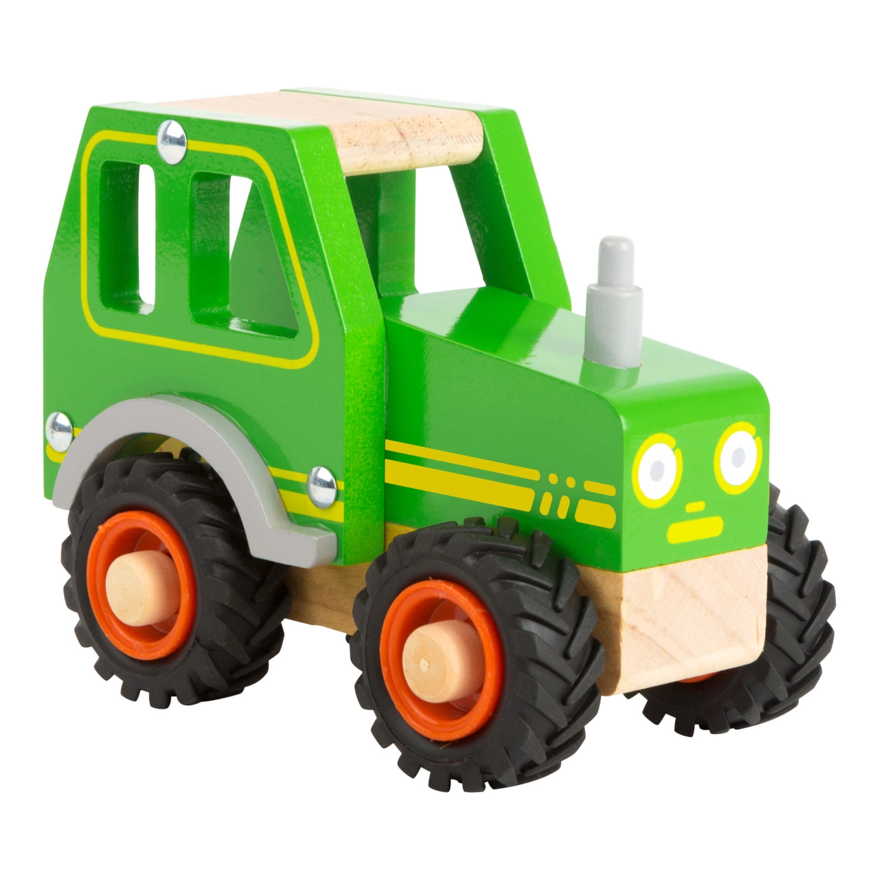 Koka traktors Small Foot ienes fermas piedzīvojumu tieši bērnistabā. Stipra konstrukcija nodrošina ilgu kalpošanas laiku un ir viegli satverama mazām bērnu rokām. Gumijas riepas nodrošina klusu kustību un ir piemērotas arī cietām grīdām.