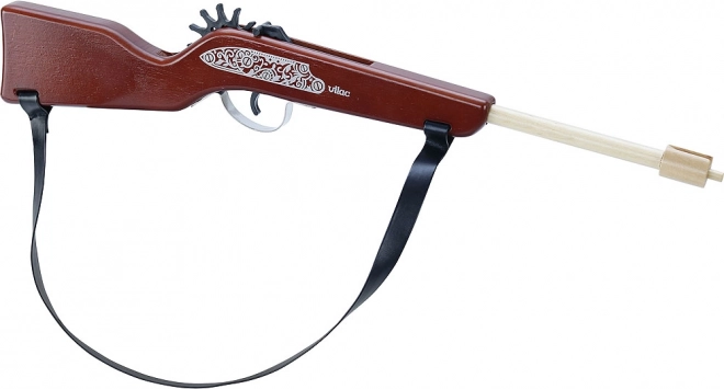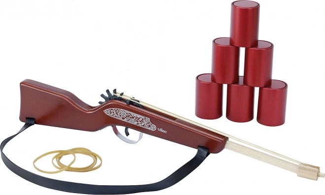 Laipni lūgti Mežonīgajos Rietumos! VILAC koka šautene ar gumijām piedāvā drošu un radošu izklaidi mazajiem šāvējiem. Pateicoties reālistiskam izskatam ar dekoratīviem motīviem un vieglajai konstrukcijai, bērni baudīs stundām ilgas precizitātes spēles – gan vienatnē, gan sacenšoties ar draugiem.