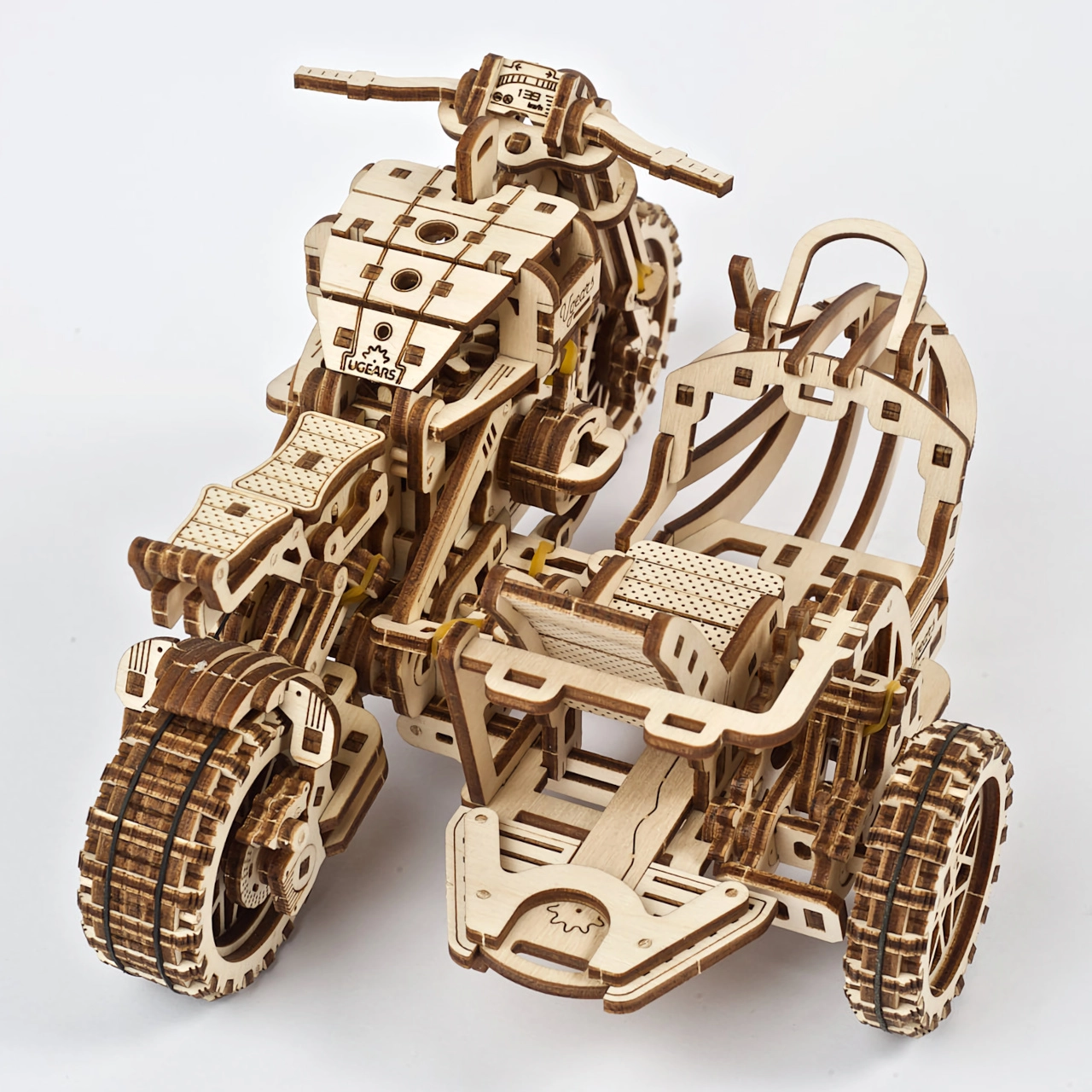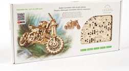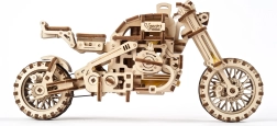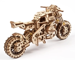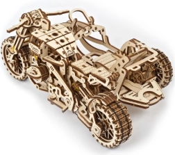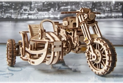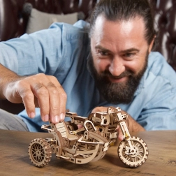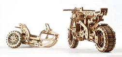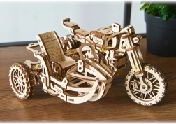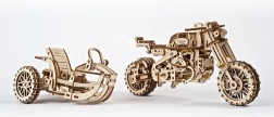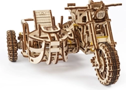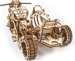 Ugears 3D puzle motocikls ar blakusvāģi – mehānisks koka modelis