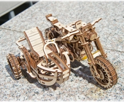 3D mehāniska koka puzle – motocikls ar blakusvāģi