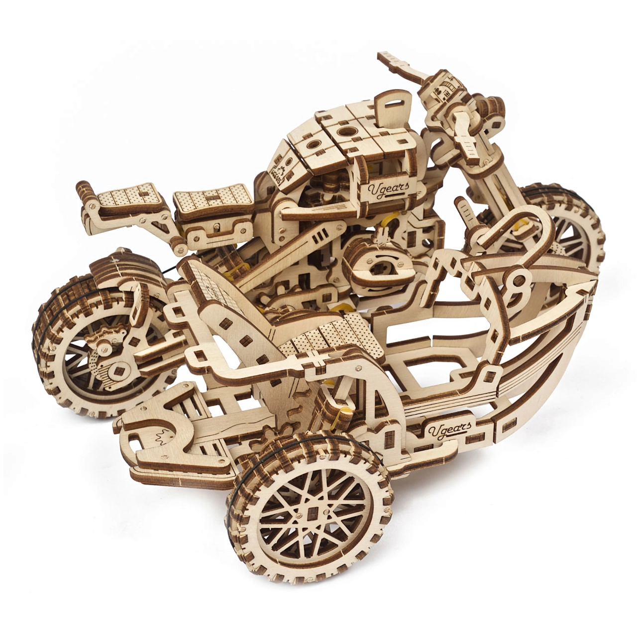 Atklājiet mehānikas burvību ar UGEARS koka modeli – motociklu ar blakusvāģi. Šis precīzi izgrieztais 3D modelis piedāvā pilnībā funkcionējošas kustīgas detaļas, salikšanu bez līmes un aizraujošu fizikas apguvi pateicoties pārnesumiem un gumijas piedziņai. Lieliska izvēle modeļu entuziastiem un stilīga dekorācija interjeram.