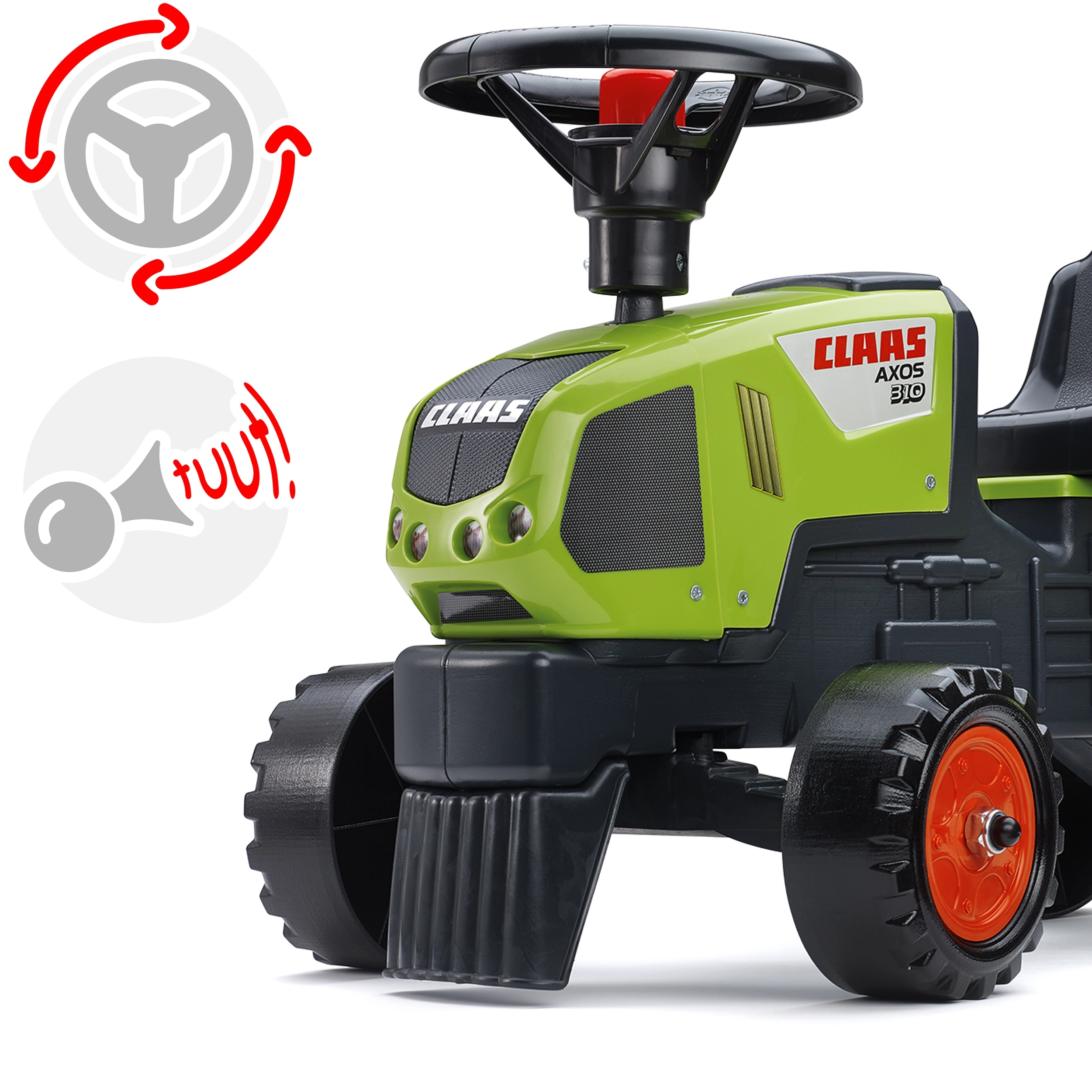 Šis robustais braucamais traktors pašiem mazākajiem sajūsmina ar reālistisko CLAAS izskatu un vieglu vadāmību. Pateicoties noņemamai piekabei, bērni var vest savas rotaļlietas vai sīkumus no darbnīcas vai dārza, savukārt stūre ar signāliņu piešķir lauksaimnieka spēlei vēl vairāk jautrības.