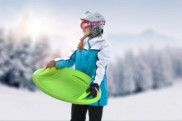 Izturīgais plastmasa materiāls iztur ziemas apstākļus un vienlaikus paliek viegls ērtai nešanai kalnā. Šķīvis ir piemērots bērniem no 3 gadu vecuma un pieaugušajiem, tāpēc jautrību var izbaudīt visa ģimene.